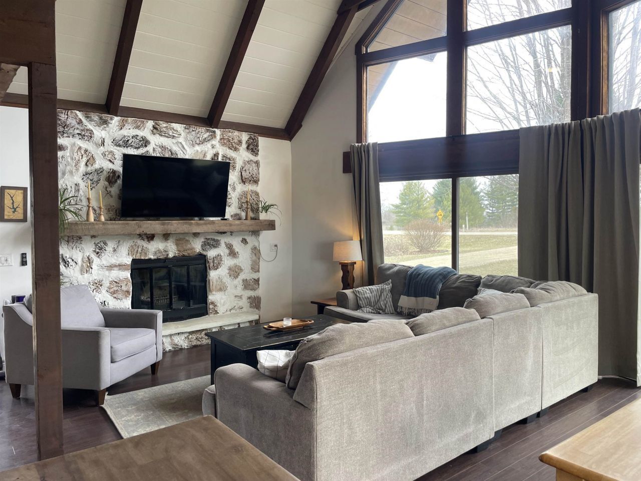 Charming A-frame retreat ideally situated for enjoying all that Apple Canyon Lake has to offer. This recently updated 3-bedroom, 2-bath home sits on a spacious lot with convenient access to nearby trails, campground, park, and lake amenities. Just a short walk to the beach and scenic waterfall, and a quick drive to the clubhouse, marina, restaurant, and fitness center, this location offers the perfect balance of recreation and relaxation. Inside, you'll find a warm and inviting open-concept living space anchored by a wood-burning fireplace. Perfect for cozy evenings after a day on the lake or trails. The kitchen features updated appliances and a dedicated coffee bar, ideal for entertaining guests. The spacious loft serves as a private primary suite, complete with a walk-in closet and adjoining bath featuring a double vanity. Two additional bedrooms are located on the main level. The finished basement provides additional space for recreation, along with a bonus office area perfect for remote work or overflow guests. An attached 2-stall garage offers ample space for storing lake gear, outdoor equipment, or an ATV. Enjoy the ease of lake living in this well-located and thoughtfully updated home. Adjoining lot included in sale. Owner is an Illinois Licensed Real Estate Broker.